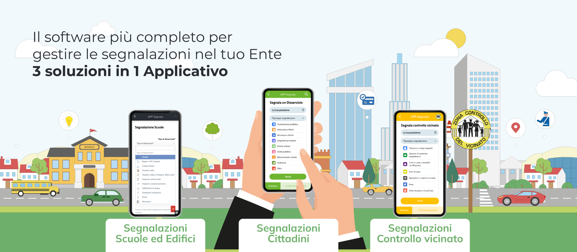 Segnalazioni Web è l’applicativo più innovativo e completo progettato per semplificare la comunicazione tra Cittadini e Amministrazione, migliorare la gestione dei guasti e disservizi riscontrati nel territorio e ottimizzare i processi interni degli Enti durante l’iter di ripristino. Il sistema consente l’invio, il monitoraggio e la gestione smart e centralizzata delle segnalazioni provenienti da Cittadini, Scuole e Controllo del Vicinato attraverso interfaccia web e APP mobile, con tracciamento dello stato, notifiche automatiche e strumenti di analisi.